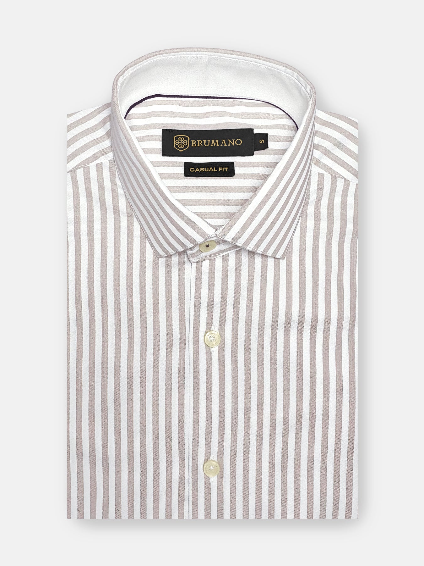 Add a touch of bold elegance to your wardrobe with this brown & white bengal striped formal shirt. Crafted from premium cotton for all-day comfort, its sharp stripes and tailored fit make it perfect for both office wear and formal occasions.