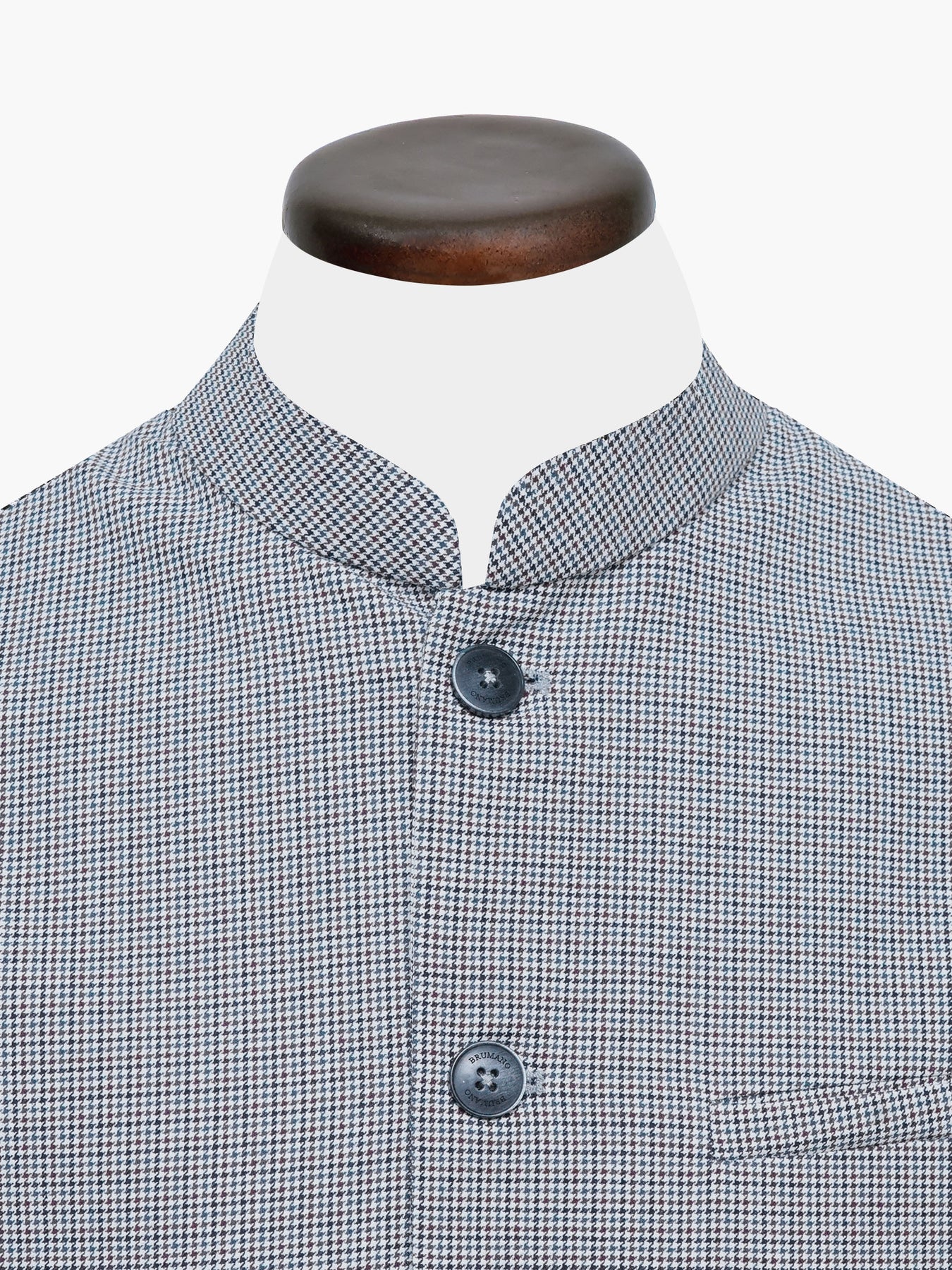 A refined blend of modern tailoring and timeless charm, this waistcoat features a beige base with a multicolor houndstooth pattern. Designed with a structured fit. Ideal for wearing it on special days with white shalwar kameez