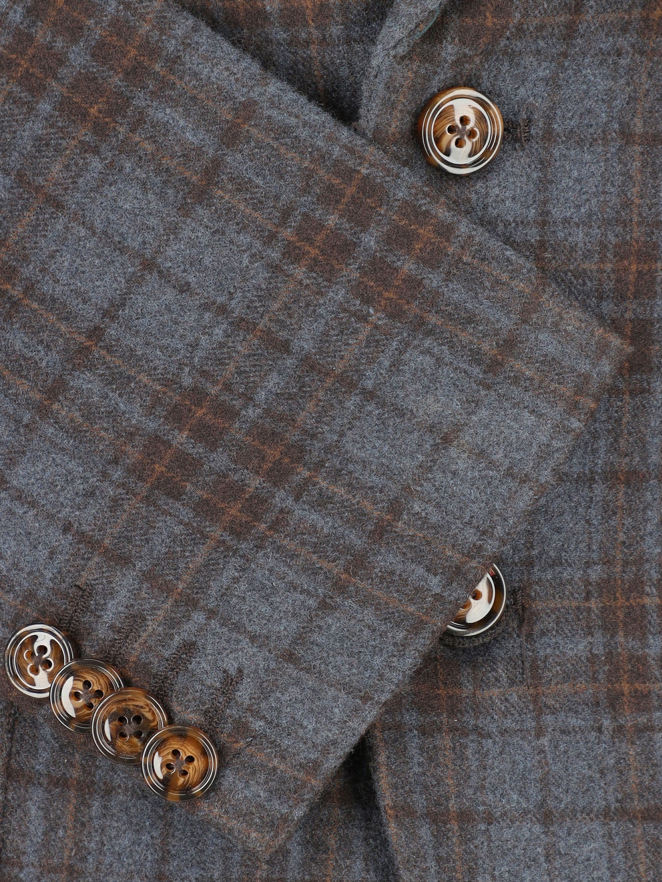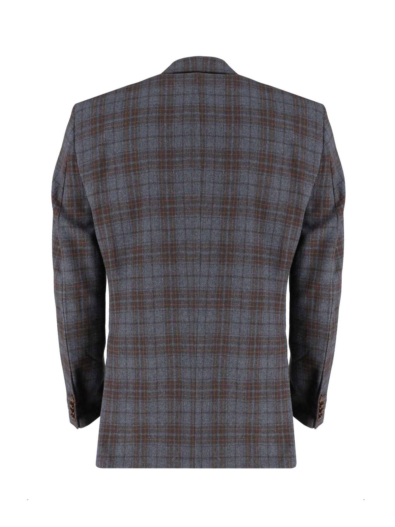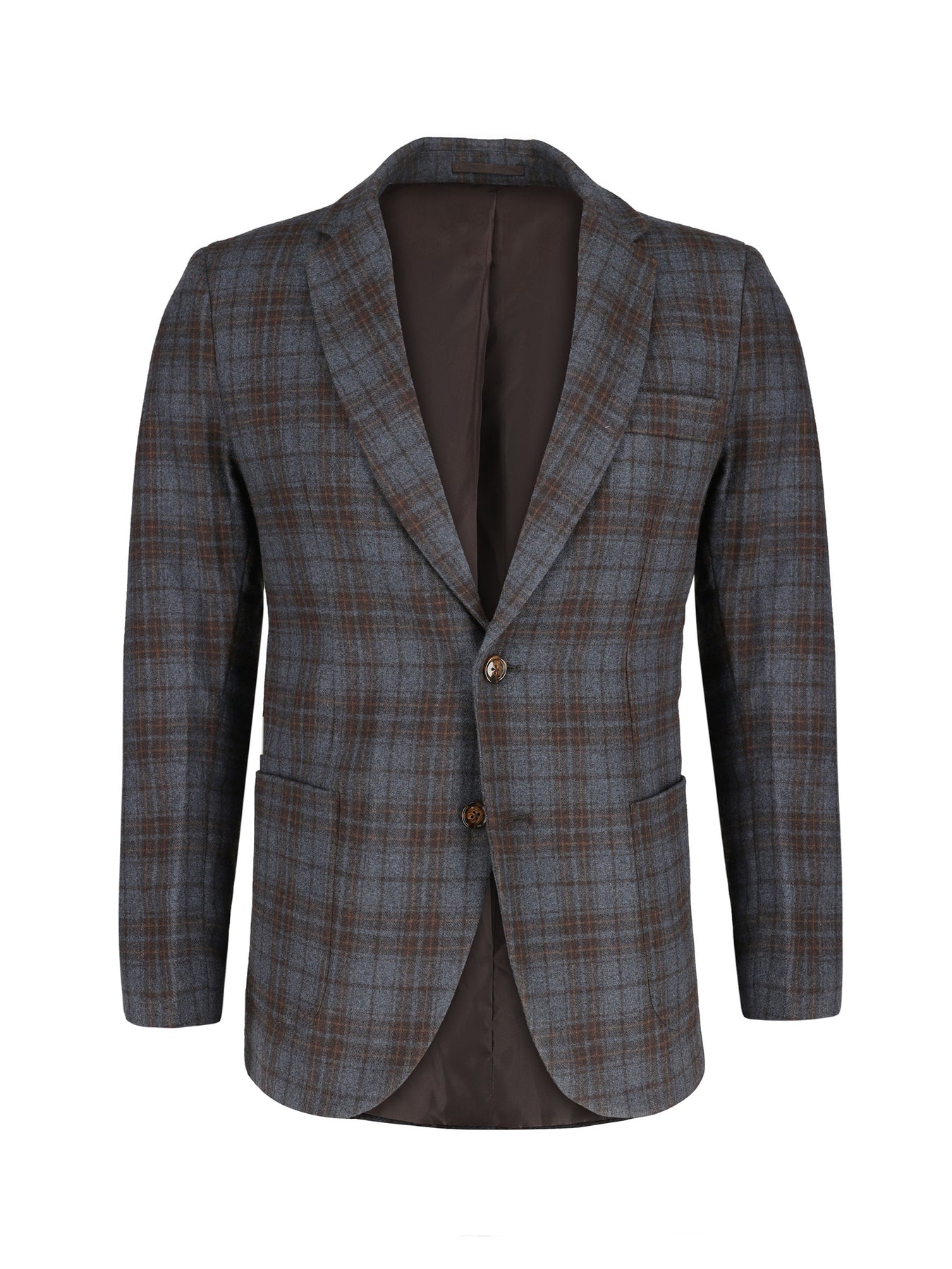 Brown & Navy Blue Checkered Wool & Cashmere Blazer - Sartoria