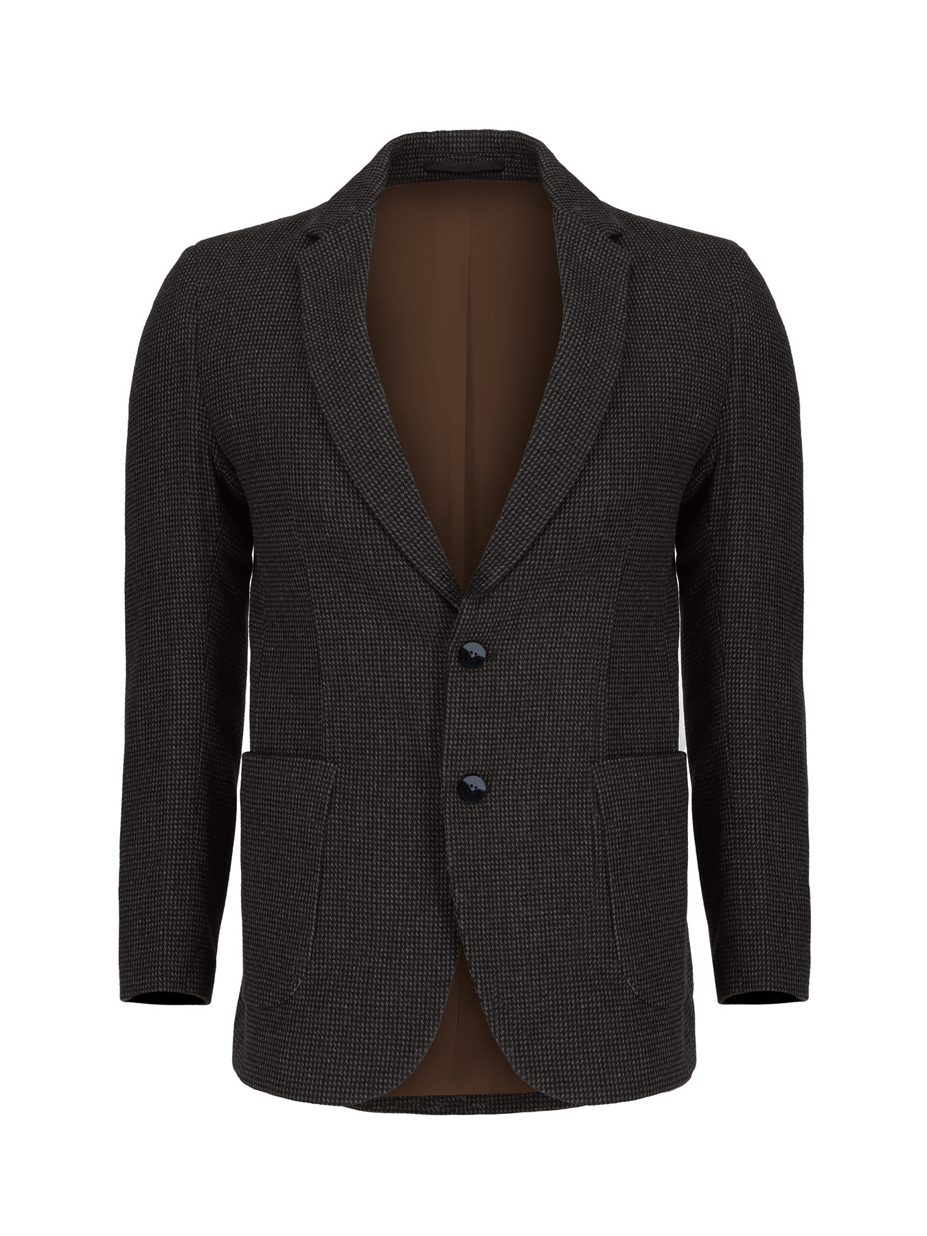 Dark Brown & Grey Dobby Wool & Cashmere Blended Blazer - Sartoria