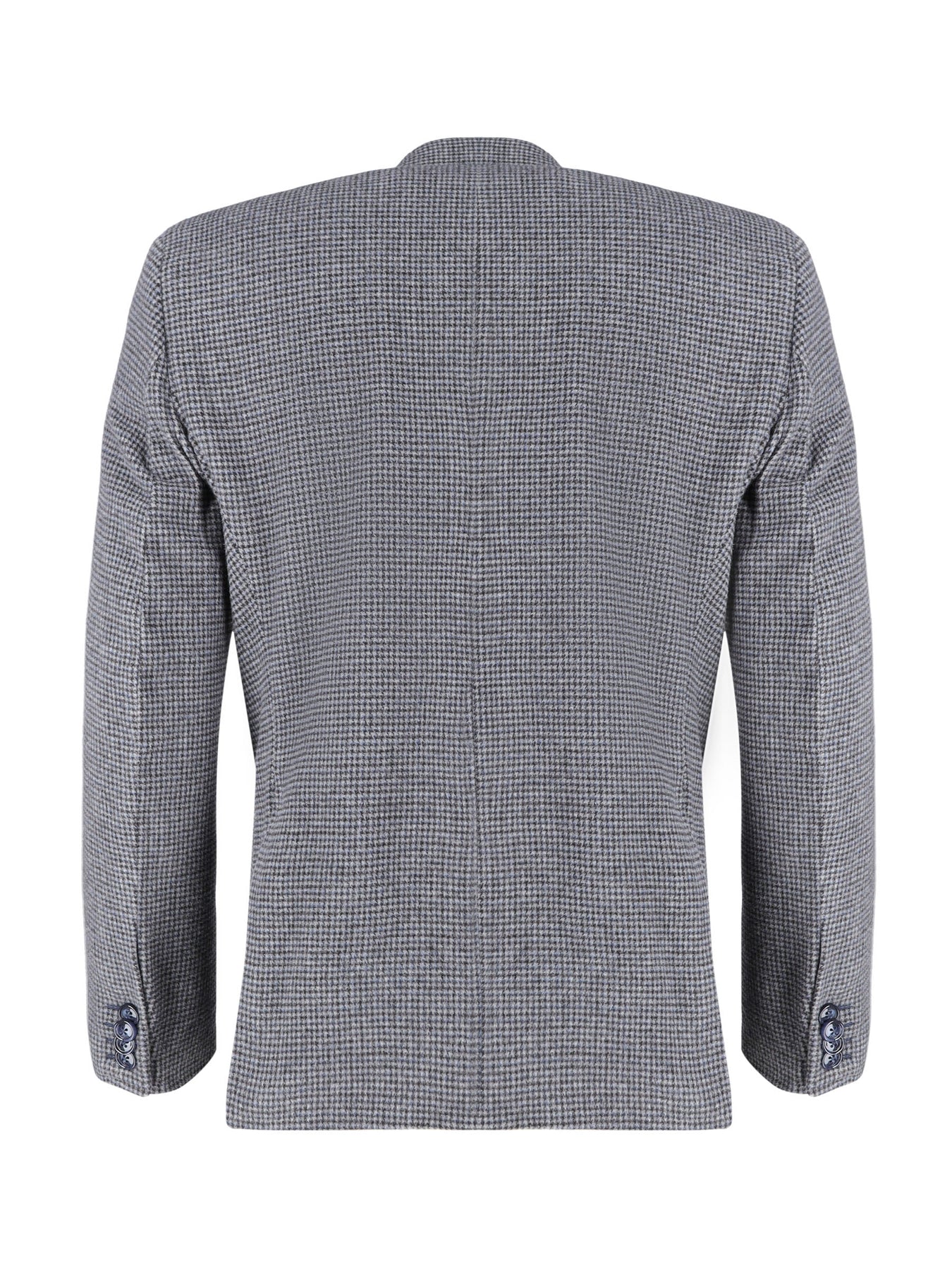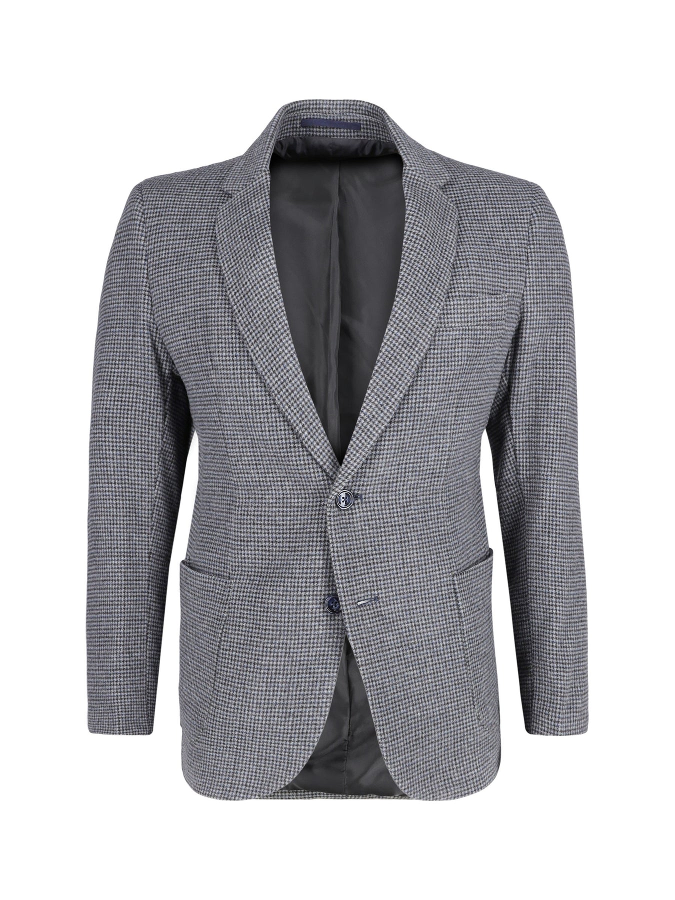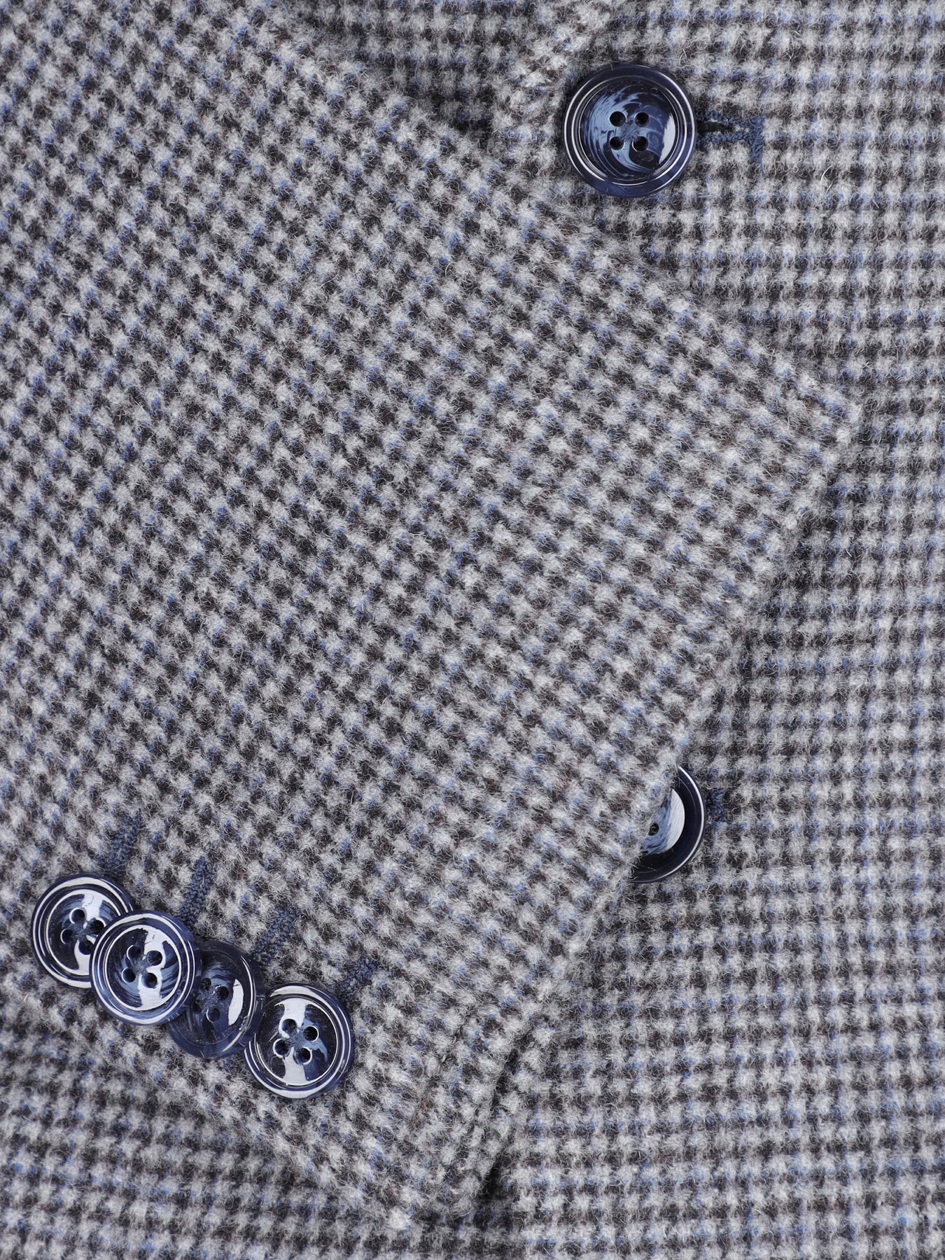 Grey Two Tone Houndstooth Wool & Cashmere Blended Blazer - Sartoria