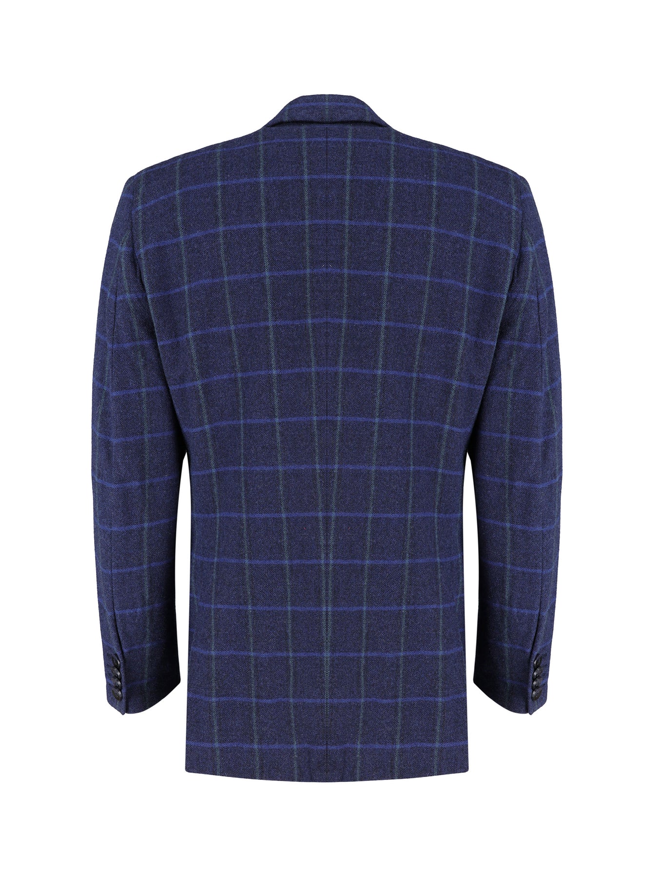 Navy Blue Windowpane Checkered Wool & Cashmere Blazer - Sartoria