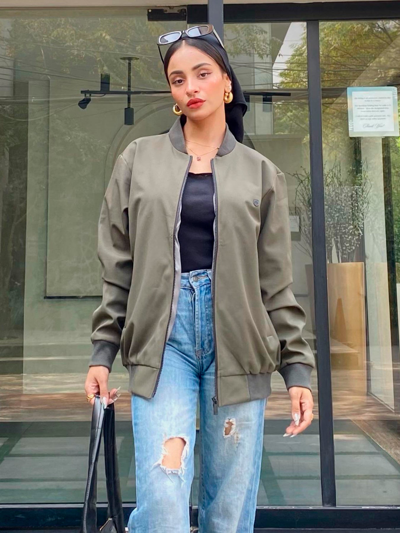 Olive green bomber jacket combines classic style with modern functionality. Made from high-quality material, it features a sleek, tailored fit with ribbed cuffs, collar, and hem for a comfortable, secure feel. The jacket is lightweight yet warm, perfect for layering in cooler weather. With multiple pockets and durable zippers, it’s both practical and stylish, making it a versatile addition to any wardrobe.