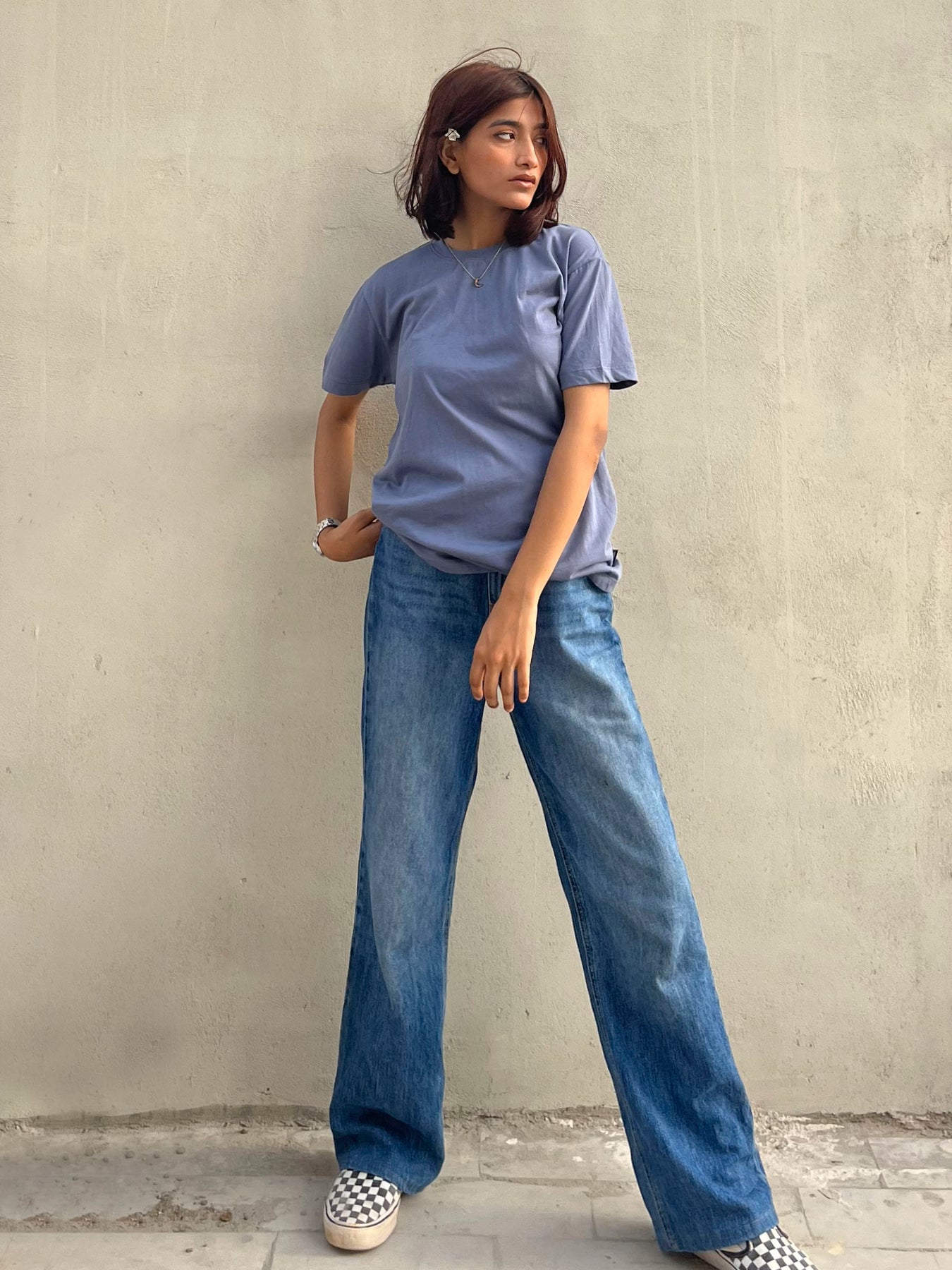 Keep it casual with this greyish blue 100% cotton basic tee. Soft, breathable, and lightweight, this everyday essential offers all-day comfort and a timeless fit. Perfect for layering or wearing on its own.